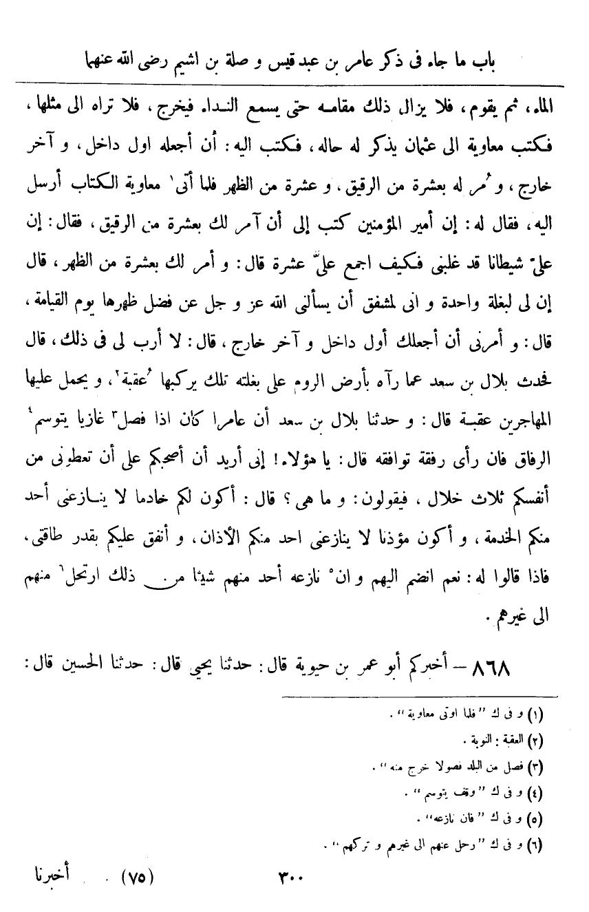 ٨٦٨ - أَخْبَرَكُمْ أَبُو عُمَرَ بْنُ حَيَوَيْهِ قَالَ: أَخْبَرَنَا يَحْيَى قَالَ: حَدَّثَنَا الْحُسَيْنُ قَالَ ⦗٣٠١⦘: أَخْبَرَنَا عَبْدُ اللَّهِ بْنُ الْمُبَارَكِ قَالَ: أَخْبَرَنَا عِيسَى بْنُ عُمَرَ، عَنْ عَمْرِو بْنِ مُرَّةَ قَالَ: جَاءَ الرَّبِيعُ بْنُ خُثَيْمٍ إِلَى أُمِّ وَلَدٍ لَهُ، فَقَالَ لَهَا: «اصْنَعِي لَنَا طَعَامًا، وَأَطْيِبِي، فَإِنَّ لِي أَخًا أُحِبُّهُ، أُرِيدُ أَنْ أَدْعُوَهُ» ، فَزَيَّنَتْ بَيْتَهَا، وَصَنَعَتْ مَجْلِسَهُ، وَصَنَعَتْ طَعَامًا، وَأَطَابَتْهُ، ثُمَّ قَالَتِ: ادْعُ أَخَاكَ، فَذَهَبَ إِلَى سِلَالٍ جَارٍ لَهُ قَدْ ذَهَبَ بَصَرُهُ، فَجَاءَ يَقُودُهُ حَتَّى أَجْلَسَهُ فِي كَرِيمِ مَجْلِسِهِ، ثُمَّ قَالَ: «قَرِّبِي طَعَامَكِ» ، قَالَتْ: فَمَا صَنَعْتَ هَذَا الطَّعَامَ إِلَّا لِهَذَا؟ قَالَ: «وَيْحَكِ، قَدْ صَدَقْتُكِ، هَذَا أَخِي، وَأَنَا أُحِبُّهُ» ، فَجَعَلَ يَأْخُذُ مِنْ طَيِّبِ ذَلِكَ الطَّعَامِ وَيُنَاوِلُهُ