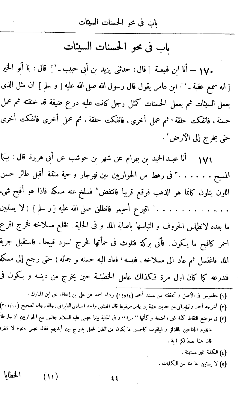 بَابٌ فِي مَحْوِ الْحَسَنَاتِ السَّيِّئَاتِ