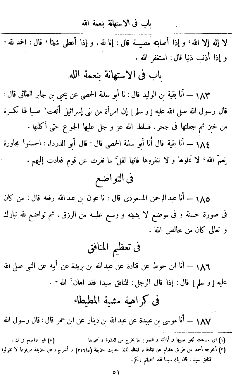بَابٌ فِي الِاسْتِهَانَةِ بِنِعْمَةِ اللَّهِ