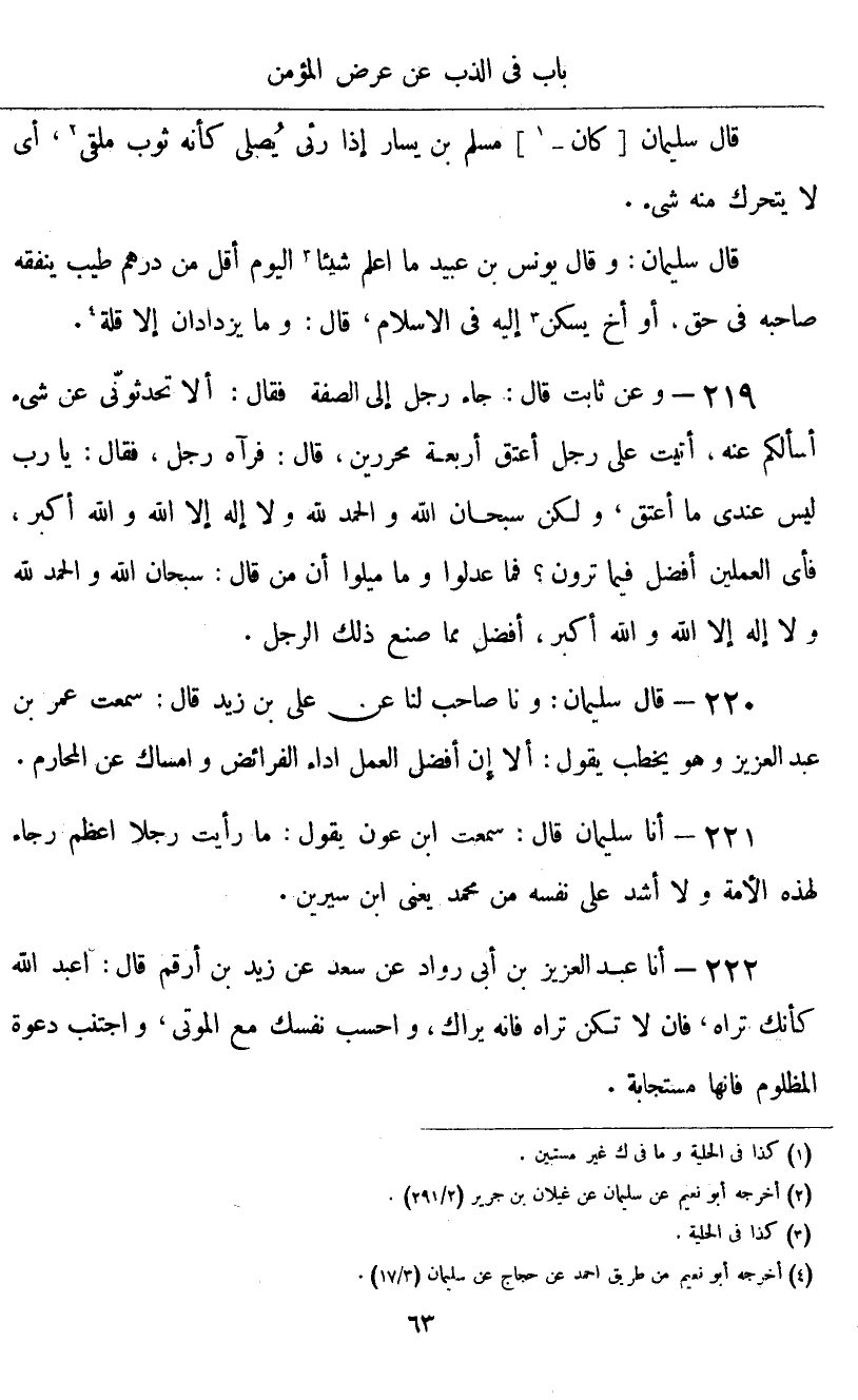 قَالَ سُلَيْمَانُ، وَنا صَاحِبٌ لَنَا، عَنِ ابْنِ زَيْدٍ قَالَ: سَمِعْتُ عُمَرَ بْنَ عَبْدِ الْعَزِيزِ، وَهُوَ يَخْطُبُ يَقُولُ: «أَلَا إِنَّ أَفْضَلَ الْعَمَلِ أَدَاءُ الْفَرَائِضِ، وَإِمْسَاكٌ عَنِ الْمَحَارِمِ»
