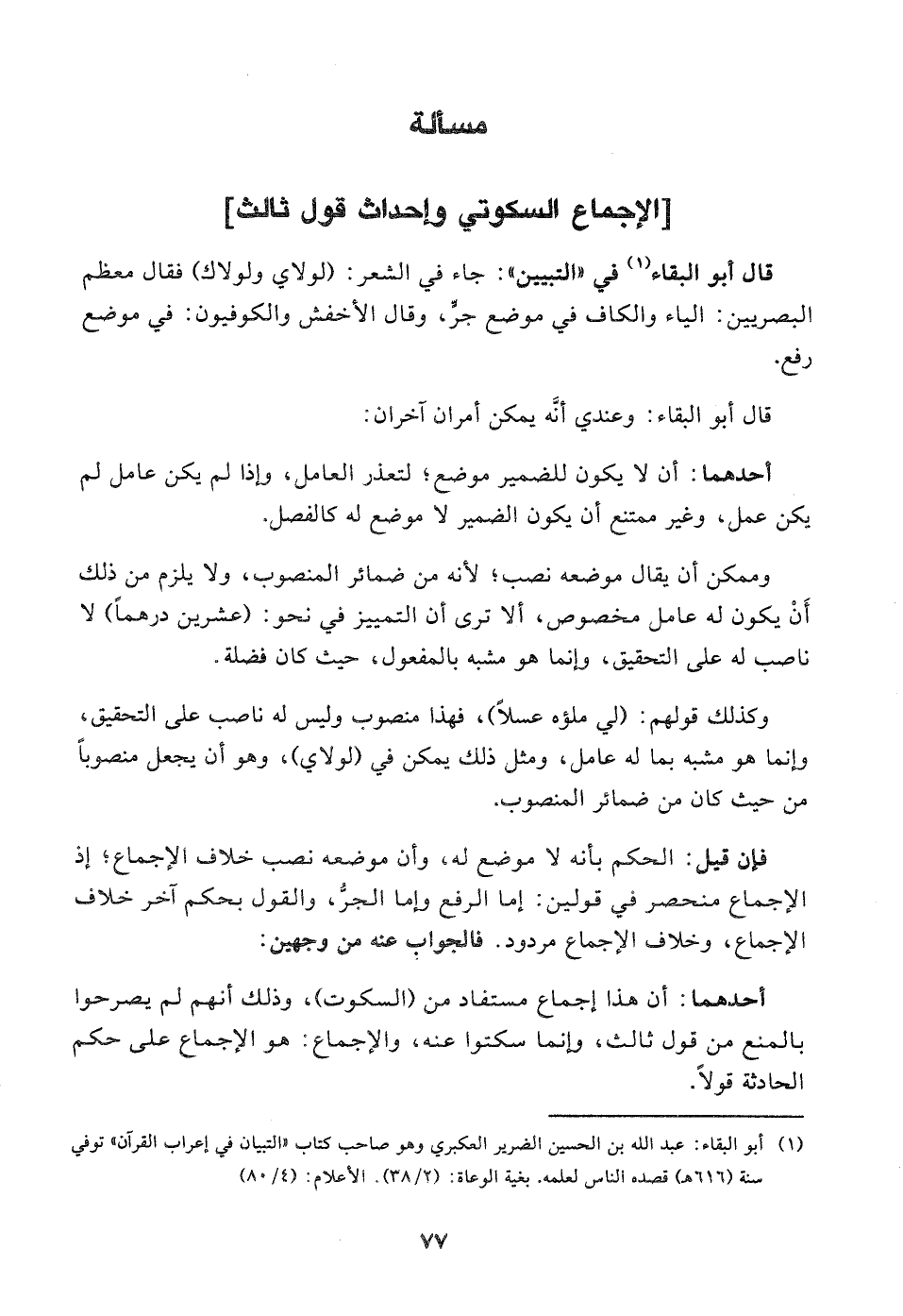 قال أبو البقاء في التبيين)