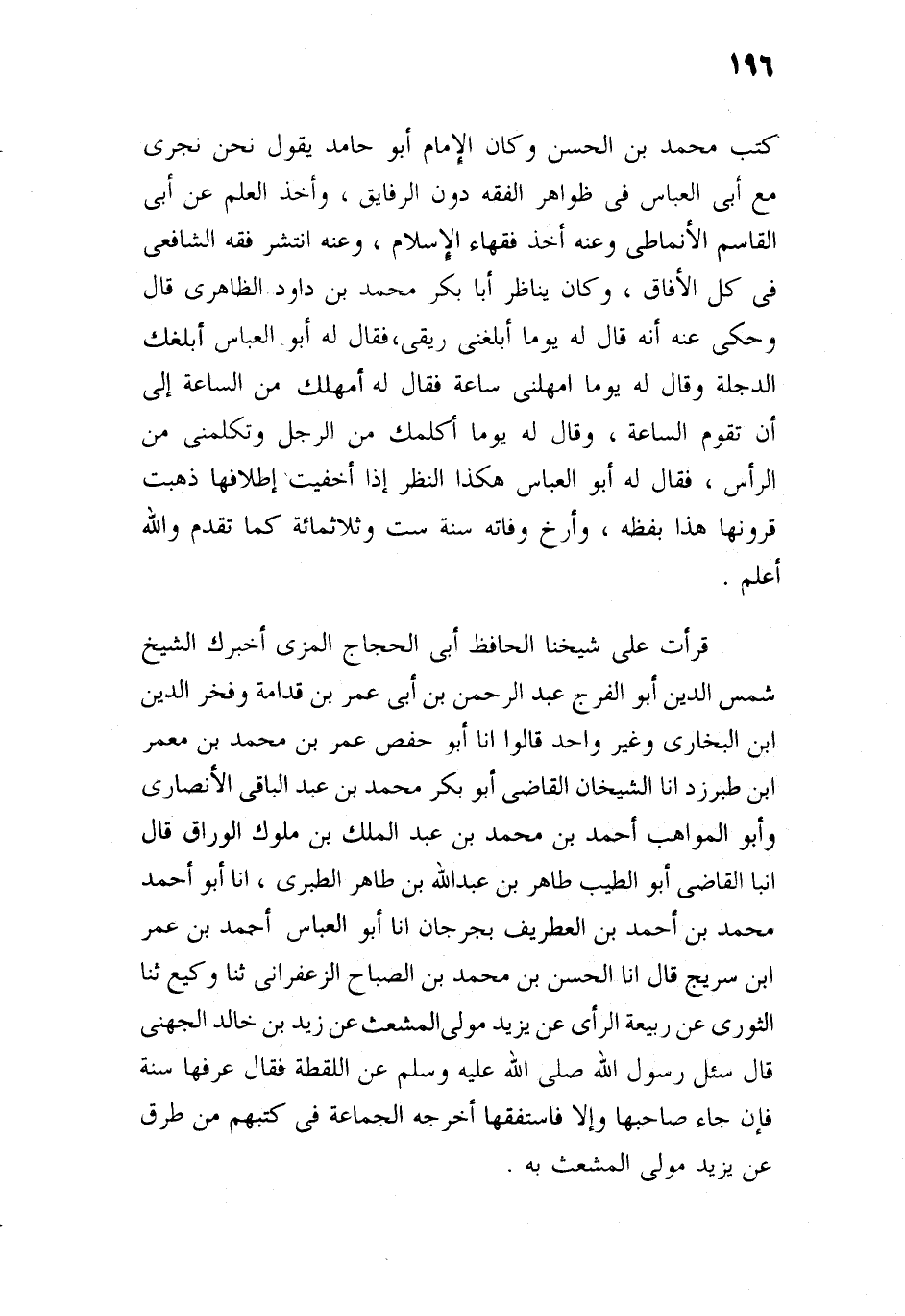 كتب محمد بن الحسن، وقال الشيخ الإمام أبو حامد، يقول: نحن نجري مع أبي العباس في ظواهر الفقه دون الدقائق، وأخذ العلم عن أبي القاسم الأنماطي، وعنه أخذ فقهاء الإسلام، وعنه انتشر فقه الشافعي في الآفاق، وكان
