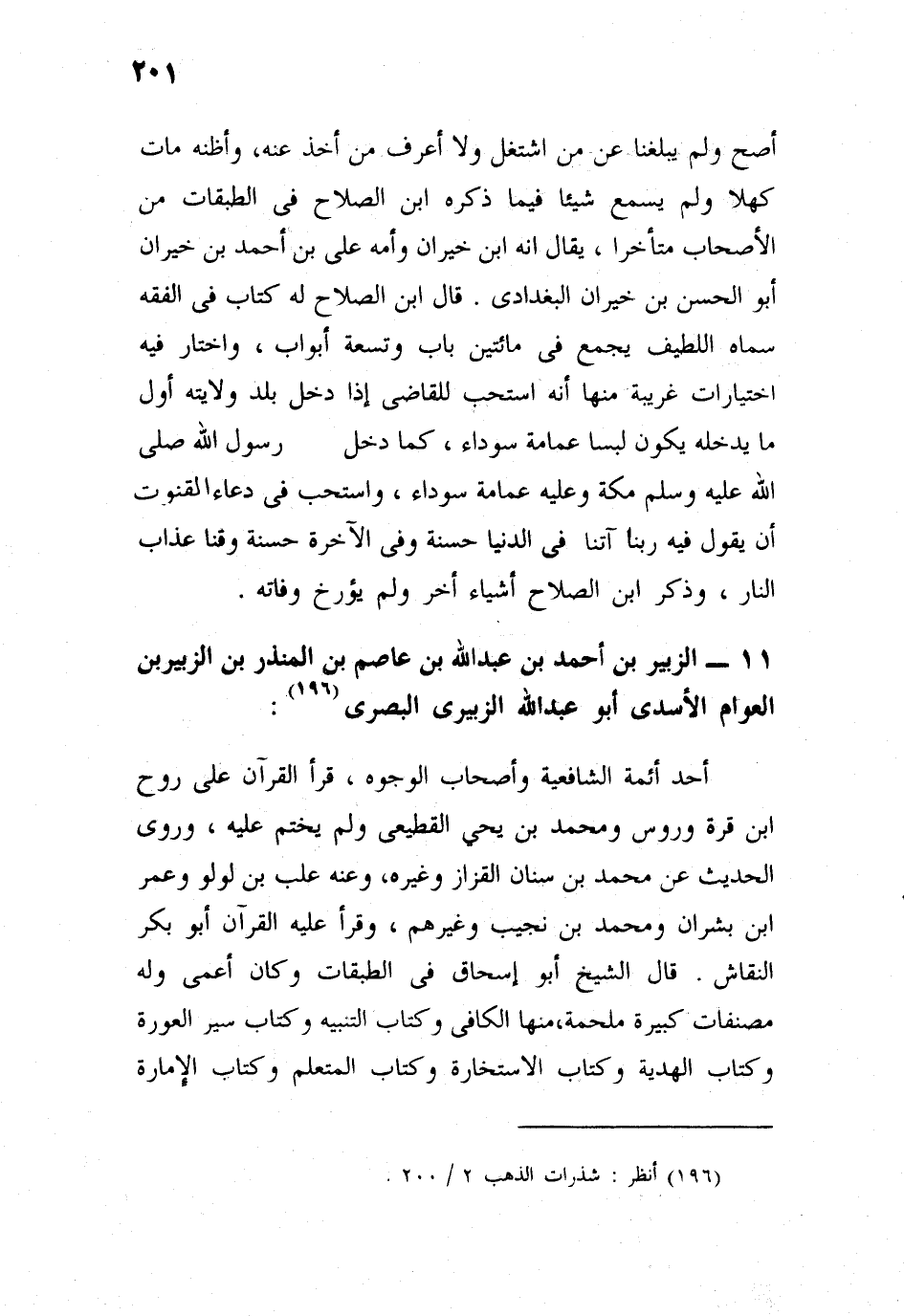 يقال: له ابن خيران، واسمه: علي بن أحمد بن خيران أبو الحسن بن خيران البغدادي، قال ابن الصلاح: له كتاب في الفقه سماه اللطيف، يشتمل على ألف ومائتي باب، وتسعة أبواب، واختار فيه اختيارات غريبة كثيرة، منها: أنه استحب للقاضي، إذا دخل بلد ولايته أول ما يدخله يكون لابسا عمامة سوداء، كما دخل رسول الله، صلى الله عليه وسلم، مكة وعليه عمامة سوداء، واستحب في دعاء القنوت، أن يقول فيه: ربنا آتنا في الدنيا حسنة، وفي الآخرة حسنة، وقنا عذاب النار، وذكر ابن الصلاح أشياء أخر ولم يؤرخ وفاته.