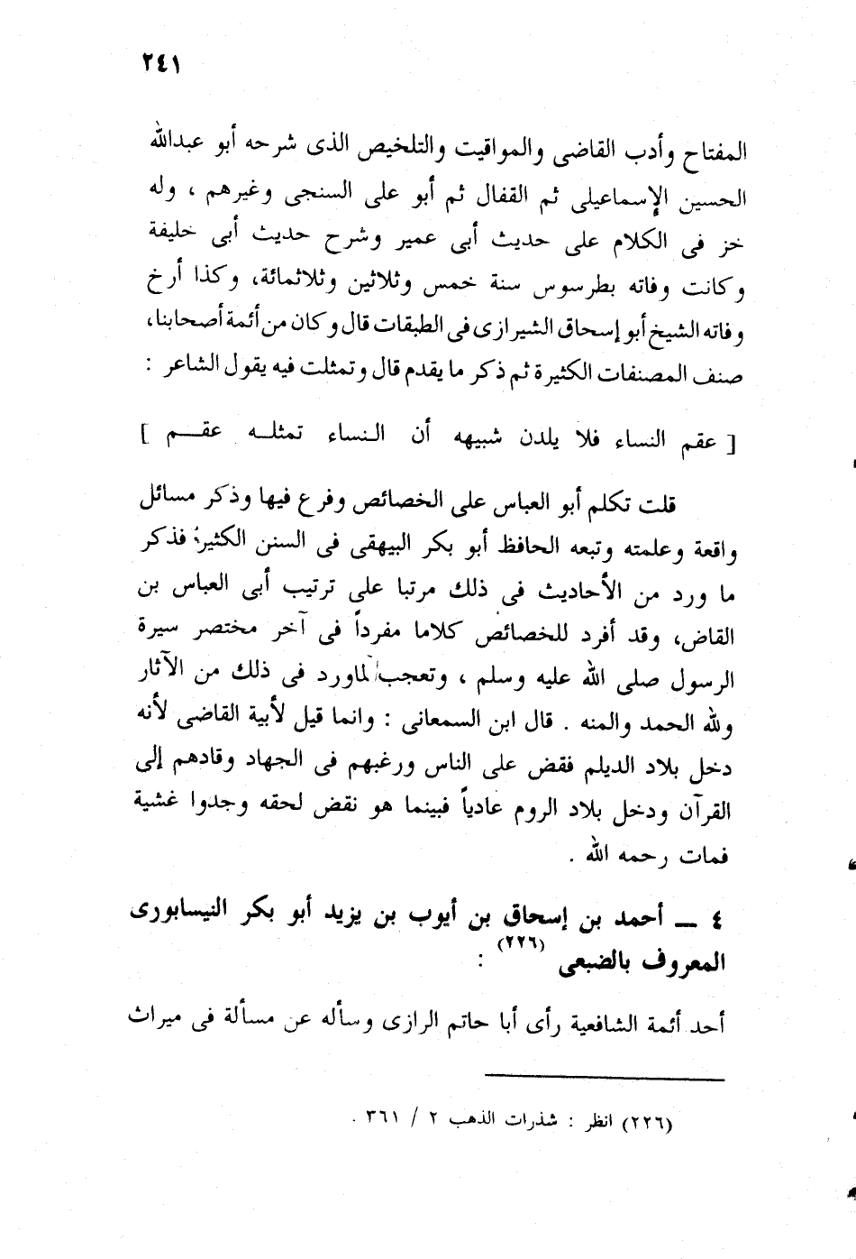 قلت: تكلم أبو العباس على الخصائص، وفرع فيها، وذكر مسائل وافقه عليها، وتبعه الحافظ أبو بكر البيهقي في السنن الكبير، فذكر ما ورد من الأحاديث في ذلك مرتبا على ترتيب أبي العباس بن القاص، وقد أفرد للخصائص كلاما مفردا في آخر مختصر سيرة رسول الله، صلى الله عليه وسلم، ونقحت ما ورد في ذلك من الآثار، ولله الحمد والمنة.
