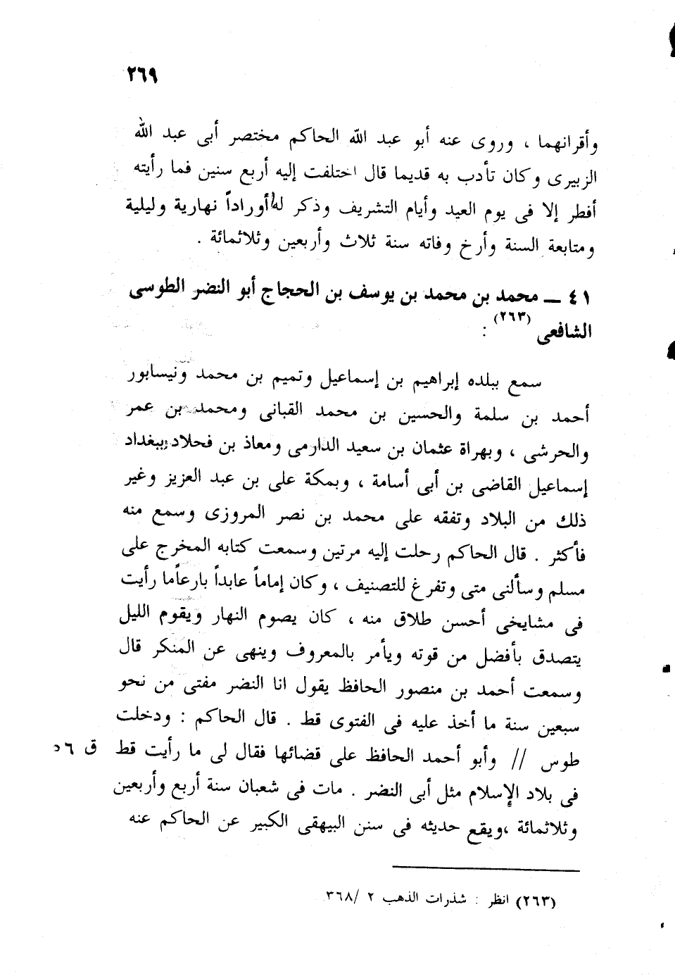 محمد بن محمد بن يوسف بن الحجاج أبو النضر الطوسي الفقيه الشافعي