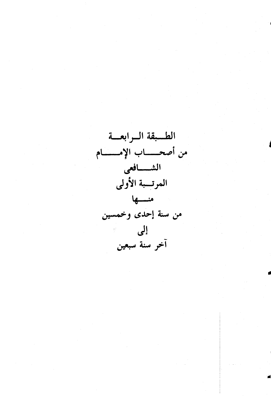 الطبقة الرابعة من أصحاب الإمام الشافعي المرتبة الأولى منها من سنة إحدى وخمسين وثلاث مائة إلى آخر سنة سبعين