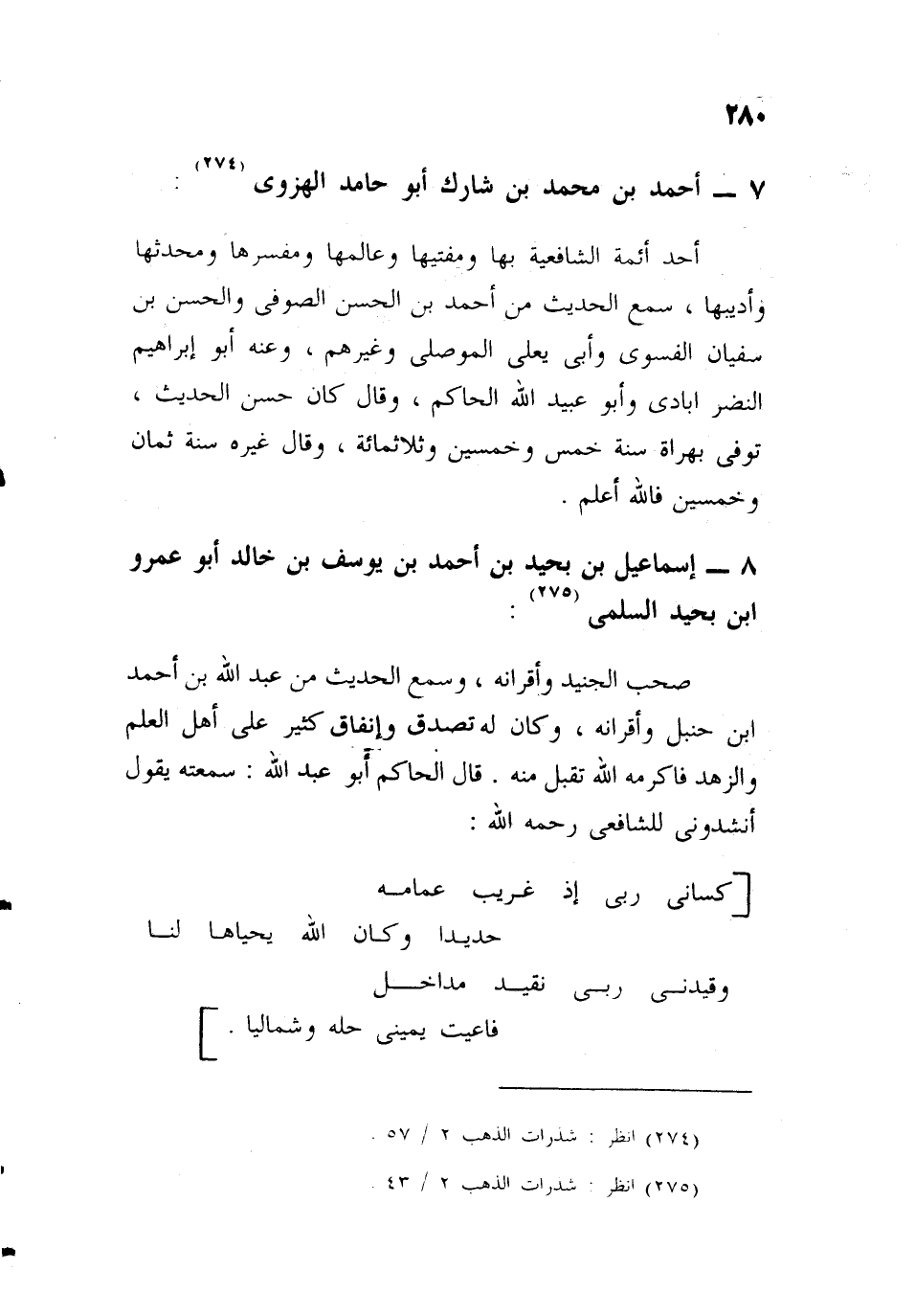 أحد أئمة الشافعية بها، ومفتيها، وعالمها، ومفسرها، ومحدثها، وأديبها، سمع الحديث من أحمد بن الحسن الصوفي، والحسن بن سفيان النسوي، وأبي يعلى الموصلي، وغيرهم، وعنه: أبو إبراهيم النصراباذي، وأبو عبيد الله الحاكم، وقال: كان حسن الحديث، توفي بهراة سنة خمس وخمسين وثلاث مائة، وقال غيره: سنة ثمان وخمسين، فالله أعلم.