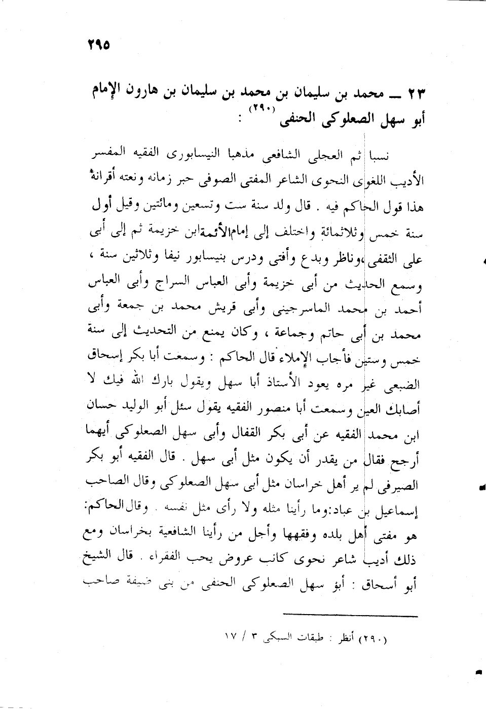 محمد بن سليمان بن محمد بن سليمان بن هارون الإمام أبو سهل الصعلوكي الحنفي، نسبا، ثم العجلي الشافعي، مذهبا، النيسابوري الفقيه المفسر الأديب اللغوي النحوي الشاعر المفتي الصوفي حبر زمانه وبقية أقرانه