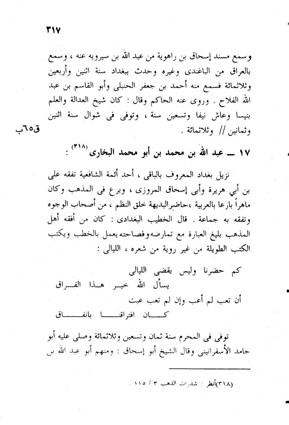 نزيل بغداد المعروف بالبافي، أحد أئمة الشافعية، تفقه على أبي علي بن أبي هريرة، وأبي إسحاق المروزي، وبرع في المذهب، وكان ماهرا بالعربية، حاضر البديهة، حلو النظم، وهو من أصحاب الوجوه، وتفقه به جماعة، قال الخطيب البغدادي: كان من أفقه أهل وقته في المذهب، بليغ العبارة، مع عارضته وفصاحته، يعمل الخطب، ويكتب الكتب الطويلة، من غير روية، ومن شعره: