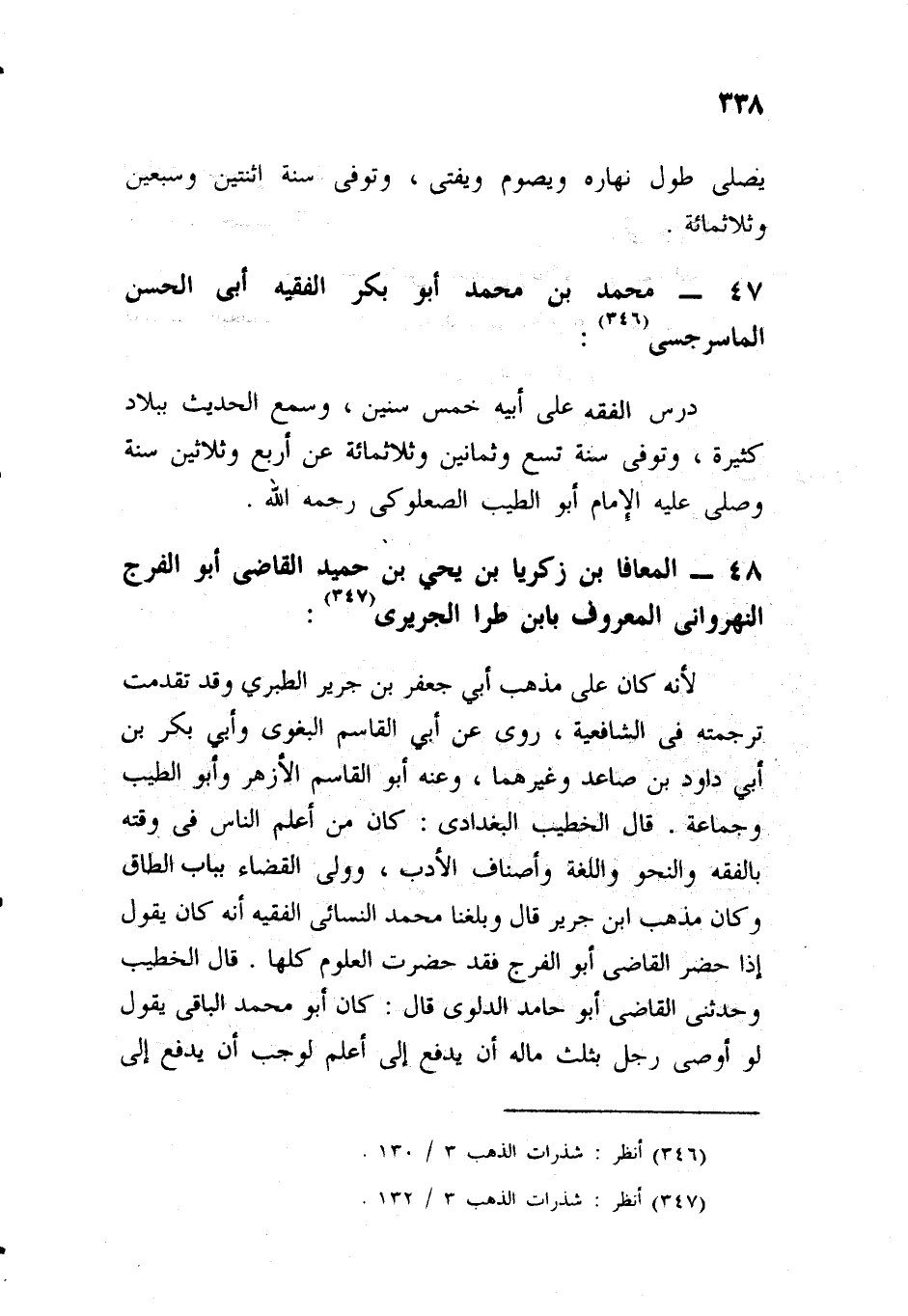 لأنه كان على مذهب أبي جعفر محمد بن جرير الطبري، وقد تقدمت ترجمته في الشافعية، روى عن: أبي القاسم البغوي، وأبي بكر بن أبي داود، وابن صاعد، وغيرهم، وعنه: أبو القاسم الأزهري، وأبو الطيب، وجماعة، قال الخطيب البغدادي: كان من أعلم الناس في الفقه، والنحو، واللغة، وأصناف الأدب، وولى القضاء بباب الطاق، وكان على مذهب ابن جرير، قال: وبلغنا عن أبي محمد الباقي الفقيه، أنه كان، يقول: إذا حضر القاضي أبو الفرج فقد حضرت العلوم كلها.