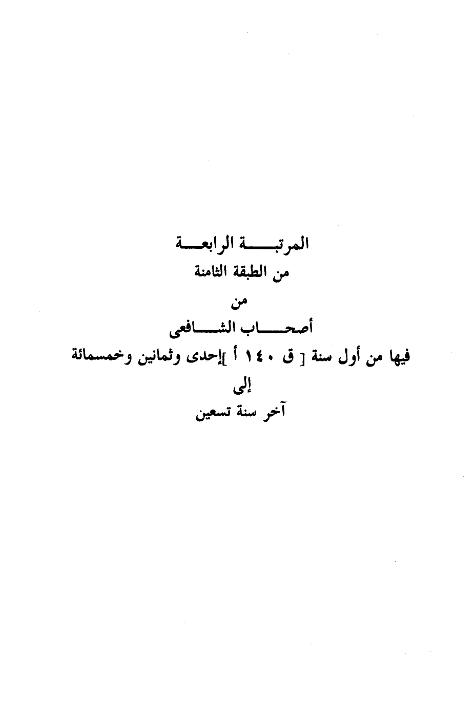 المرتبة الرابعة من الطبقة الثامنة من أصحاب الشافعي رضي الله عنه فيها من أول سنة إحدى وثمانين وخمس مائة إلى آخر سنة تسعين