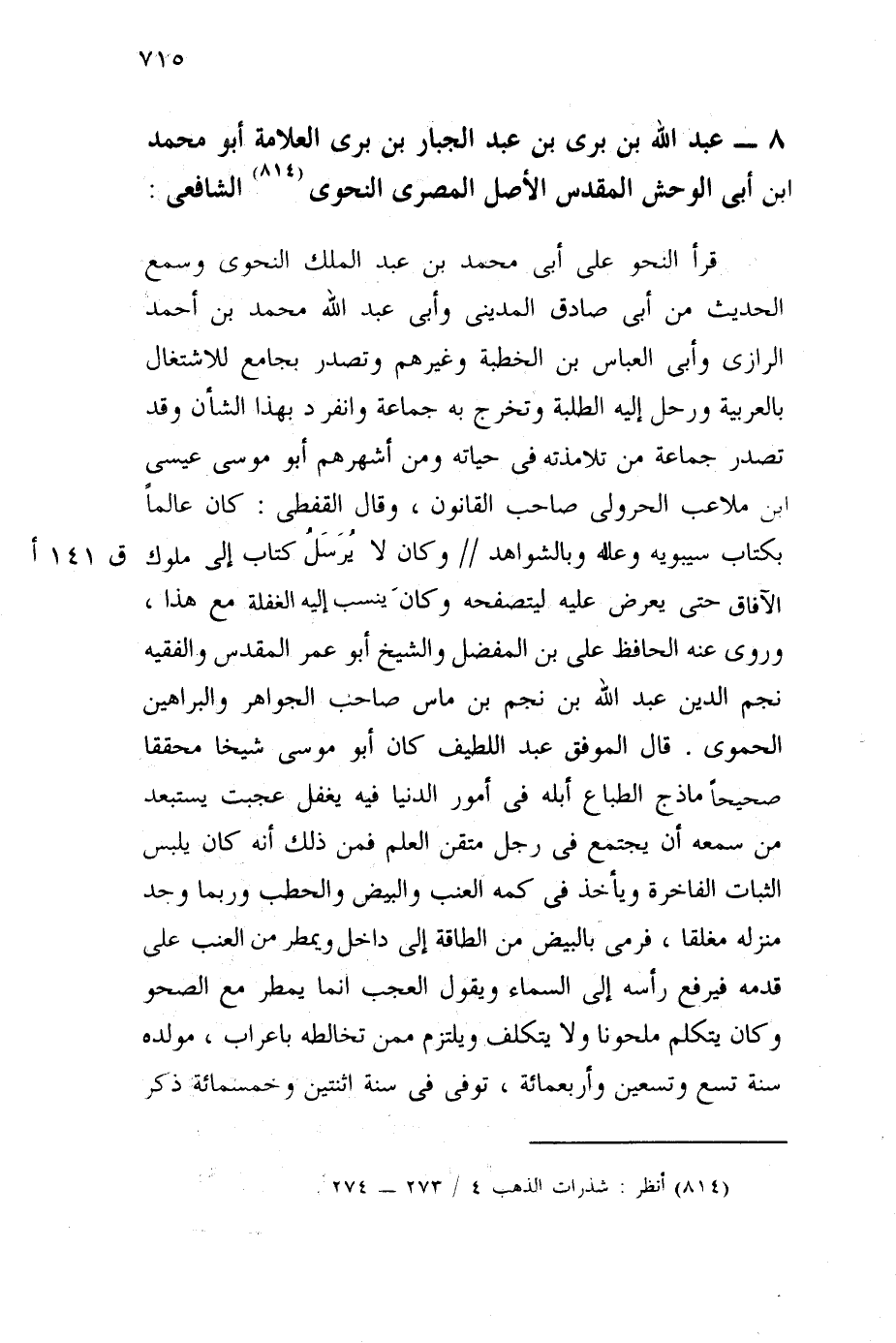 عبد الله بن بري بن عبد الجبار العلامة أبو محمد بن أبي الوحش المقدسي الأصل المصري النحوي الشافعي