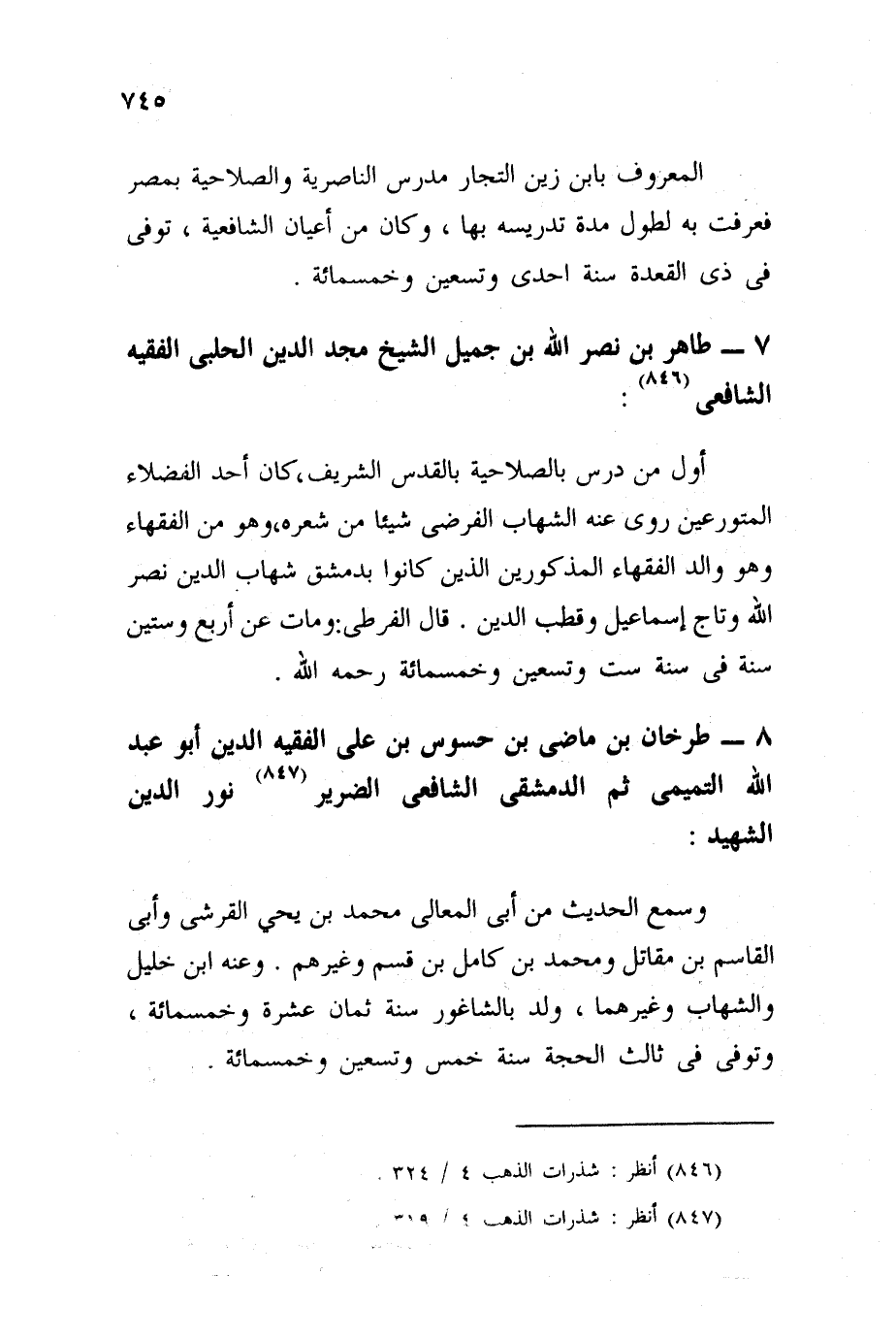 طاهر بن نصر الله بن جهبل الشيخ مجد الدين الحلبي الفقيه الشافعي