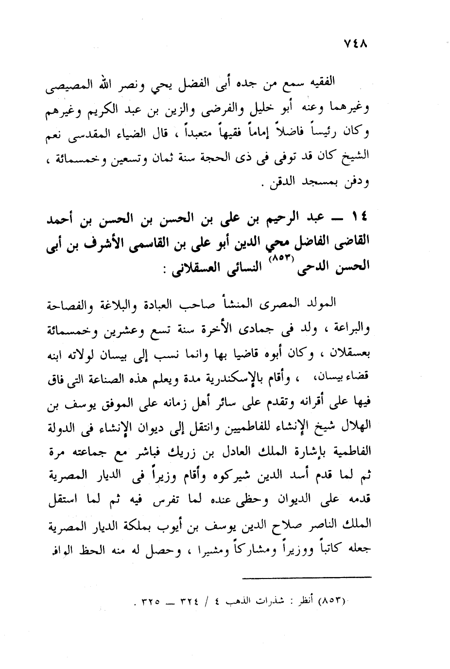 عبد الرحمن علي بن الحسن بن الفرج بن أحمد القاضي الفاضل محيي الدين أبو علي ابن القاضي الأشرف أبي الحسن اللخمي البيساني العسقلاني المولد المصري المنشأ