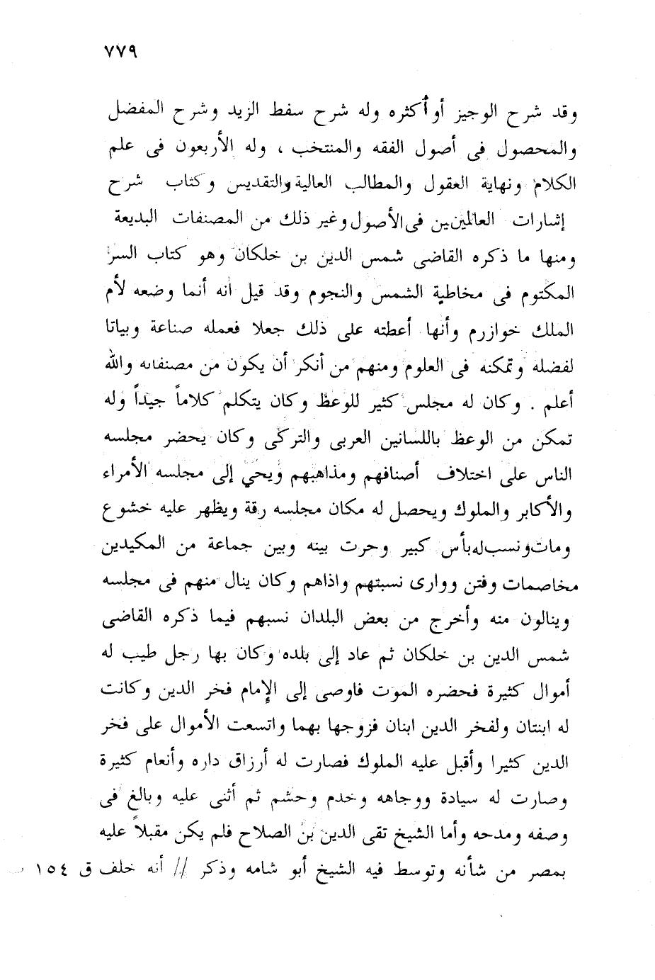 واتسعت الأموال على فخر الدين كثيرا، وأقبل عليه الملوك، فصارت له أرزاق دائرة، وأنعام كثيرة وصارت له جاهة وخدم وحشم، ثم أثنى عليه كثيرا، وبالغ في وصفه ومدحه، وأما الشيخ تقي الدين ابن الصلاح فلم يكن مقبلًا عليه، وربما غض من شأنه، وتوسط فيه الشيخ أبو شامة وذكر أنه خلف