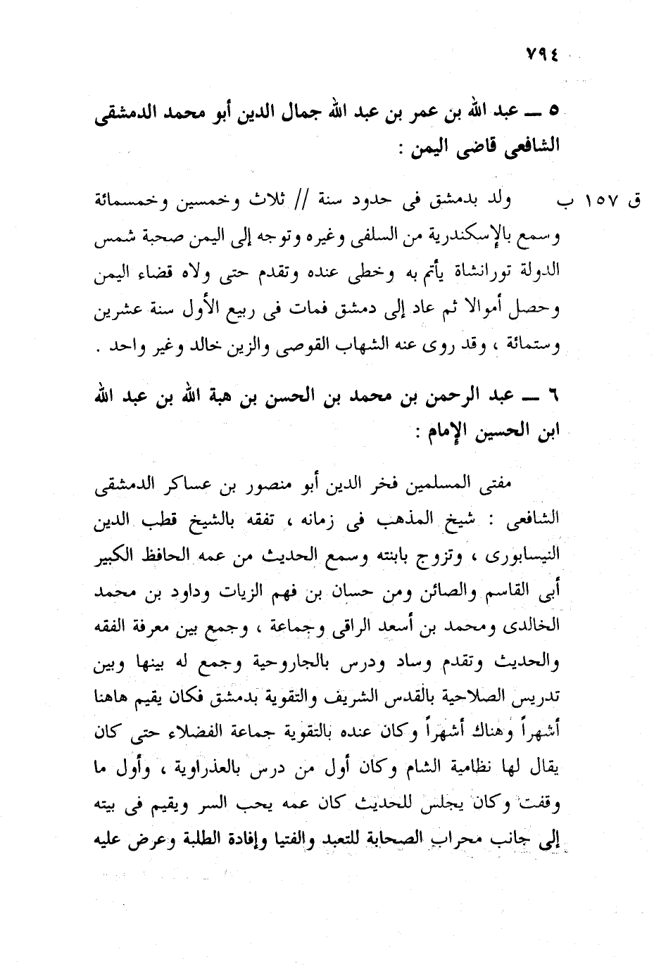 عبد الله بن عمر بن عبد الله جمال الدين أبو محمد الدمشقي الشافعي قاضي اليمن