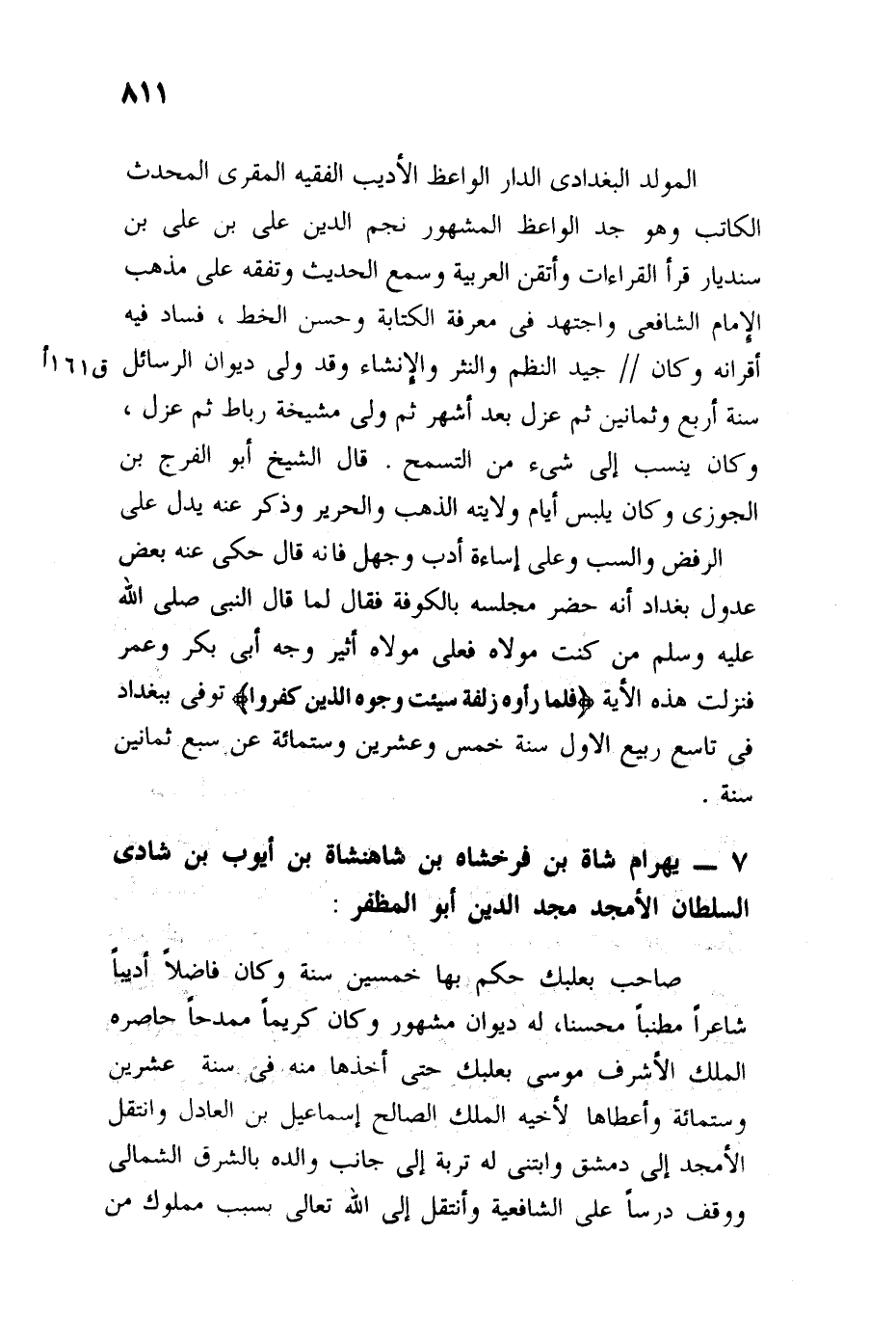 صاحب بعلبك، حكم بها خمسين سنة، وكان فاضلًا أديبًا شاعرًا مطنبًا محسنا، له ديوان مشهور وكان كريمًا ممدحًا الملك الأشرف ببعلبك حتى أخذها منه في سنة سبع وعشرين وست مائة، وأعطاها لأخيه الملك الصالح إسماعيل بن العادل، وانتقل الأمجد إلى دمشق، وابتنى له تربة إلى جانب والده بالسرف الشمالي، ووقف مدرسة على الشافعية، وانتقل إلى الله تعالى، بسبب مملوك من