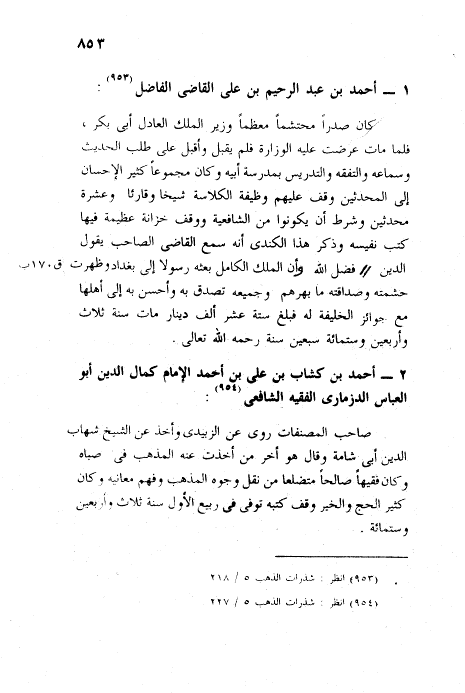 كان صدرًا رئيسا محتشمًا معظمًا وزير الملك العادل أبي بكر، فلما مات عرضت عليه الوزارة فلم يقبل، وأقبل على طلب الحديث، سماعه والتفقه والتدريس بمدرسة أبيه، وكان مجموع الفضائل كثير الإحسان إلى المحدثين، وقف عليه وظيفة بالكلاسة شيخًا وقارئًا وعشرة محدثين، وشرط أن يكونوا من الشافعية، ووقف خزانة عظيمة فيها كتب نفيسة، وذكر هذا الكندي أنه سمع القاضي الصاحب شرف الدين بن فضل الله أن الكامل بعثه رسولًا إلى بغداد وظهرت من حشمته وصدقاته ما بهرهم، وجمع ما تصدق به وأحسن به إلى أهلها مع جوائز الخليفة له، فبلغ سنة عشرين ألف دينار، مات سنة ثلاث وأربعين وست مائة