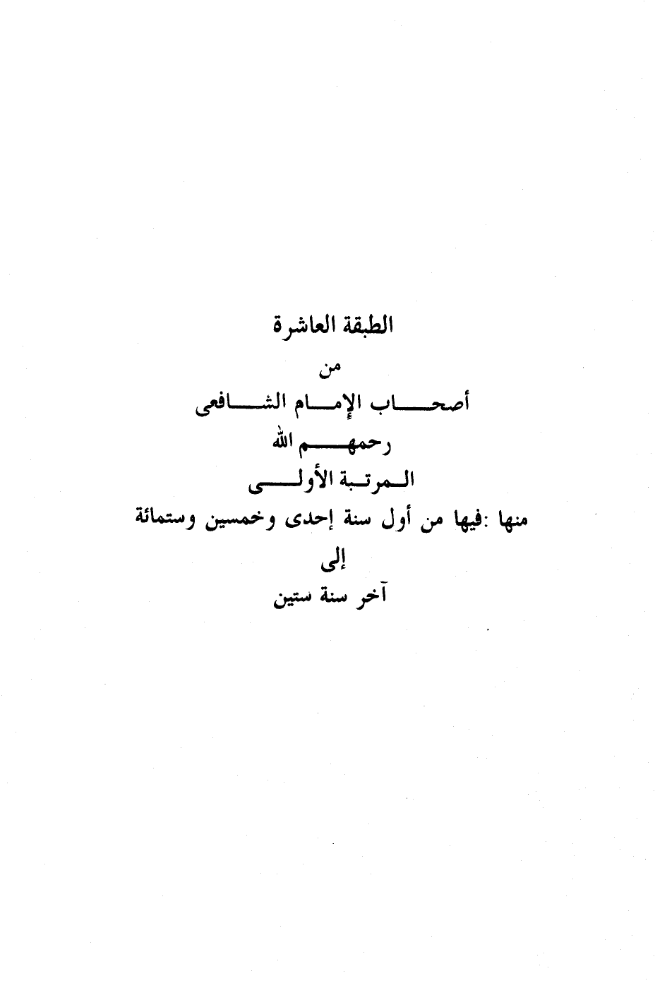 الطبقة العاشرة من أصحاب الشافعي رضي الله عنه المرتبة الأولى منها من أول سنة إحدى وخمسين وست مائة إلى آخر سنة ستين