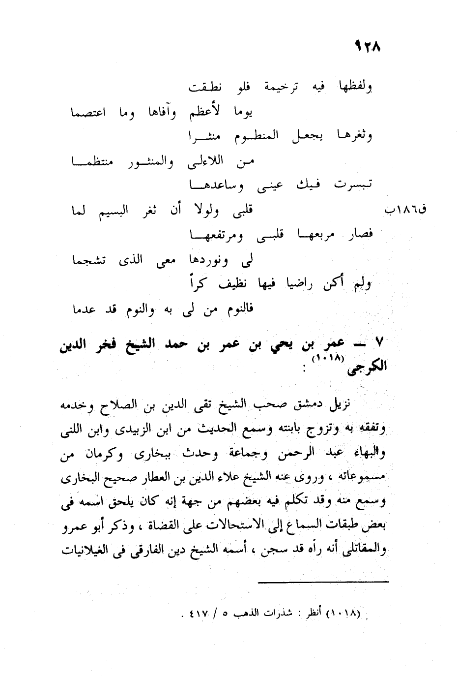 عمر بن يحيى بن عمر بن حمد الشيخ فخر الدين الكرجي