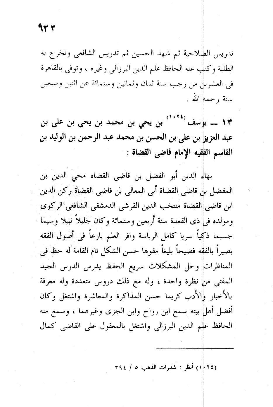 يوسف بن يحيى بن محمد بن يحيى بن علي بن عبد العزيز بن علي بن الحسن بن محمد عبد الرحمن بن الوليد بن القاسم الفقيه الإمام قاضي القضاة بهاء الدين أبو الفضل ابن قاضي القضاة محيي الدين أبي الفضل القرشي الدمشقي الشافعي الركوي