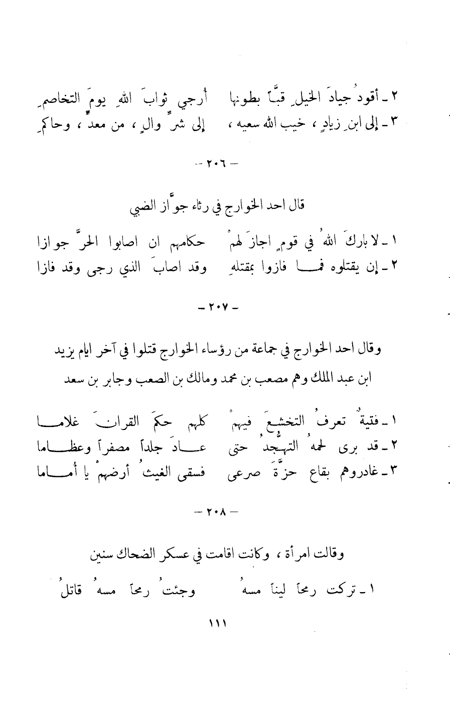 8 - حذار الأحاديث التي لوم غيها ... عقدن بأعناق الرجال المخازيا الأبيات 1؟ 8 في لباب الآداب: 224؛ 1؟ 6 في تذكرة الصفدي 2: 7 وأمالي المرتضى 1: 637 وحماسة الخالديين 1: 117.