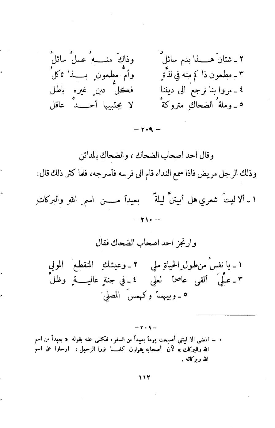6 - أدعو الكماة إلى النزال ولا أرى ... نحر الكريم على القنا بحرام الأبيات 1؟ 6 في العيني 3: 150 والخزانة 4: 258؛ 1؟ 4 في السيوطي: 150 وأمالي القالي 1: 190 والتبريزي 1: 68 وتحفة الأنفس: 59 وشرح النهج 1: 313 (3: 279) 2: 266 (7: 305) وزهر الآداب 4: 163؛ وبهجة المجالس 1: 472؛ 1، 2، 4 في حماسة الخالديين: 118 والبيت 2 في المغني 2: 118 وشرح المفصل 2: 1099 والعيني 3: 305، والبيت 4 في السمط: 806 واللسان (بزل)