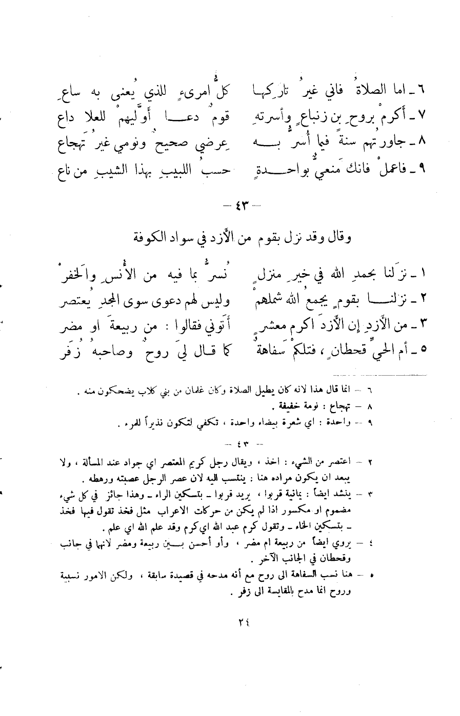 عجباً ما عجبت للجامع المال يباهي به ويرتفده ... ويضيع الذي يصيره الله إليه فليس يعتقده ... يوم لا ينفع المخول ذا الثروة خلانه ولا ولده ... يوم يؤتى به وخصماه وسط الجن والإنس رجله ويده ... وفي قول عمران: