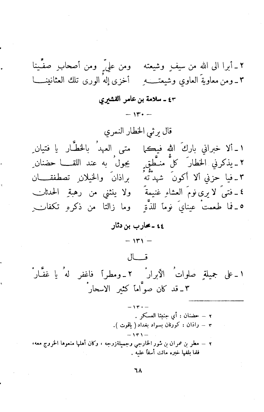 1) - مسعود بن عمرو: زعيم الأزد في البصرة، وفي مقلته انظر الأنساب 4 / 2: 97 وما بعدها والمغتالين: 171؛ وبية لقب عبد الله بن الحارث بن نوفل بن الحارث بن عبد المطلب، والي البصرة حينئذ.
