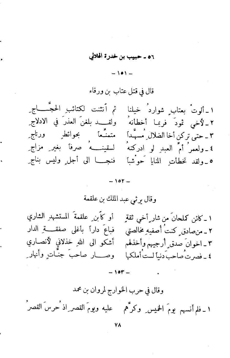 1 - كم من قتيل تنقر الطير عينه ... بسولاف غرته المنى والجعائل البيت في أنساب الأشراف 2: 170 (م)
