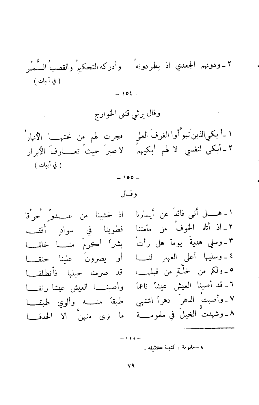1 - أتانا بأحجار ليقتلنا بها ... وهل تقتل الأقران ويحك بالحجر البيت في أنساب الأشراف 2: 171 (م) والكامل: 638 (3: 326) وشرح النهج 1: 387 (4: 154) ومعجم ياقوت (سلى، سلبرى) والروض المعطار (دولاب)