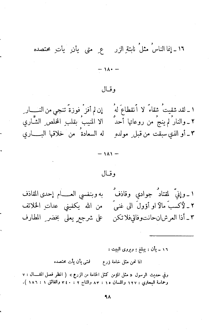 12 - إن تنهلم يد المهلب في الحر ... ب سبايا فإنني لا أبالي 13 يمنع الشيخ منهم عظم الخطب وأن ليس بيعهم بحلال ...