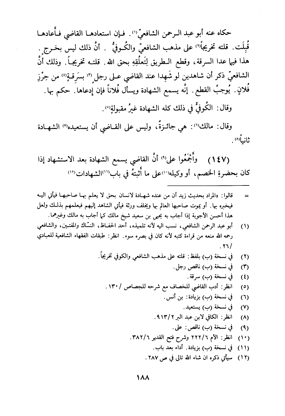(147) وأجمعوا على أن القاضي يسمع الشهادة بعد الاستشهاد إذا كان بحضرة الخصم, أو وكيله على ما أثبته في باب الشهادات.