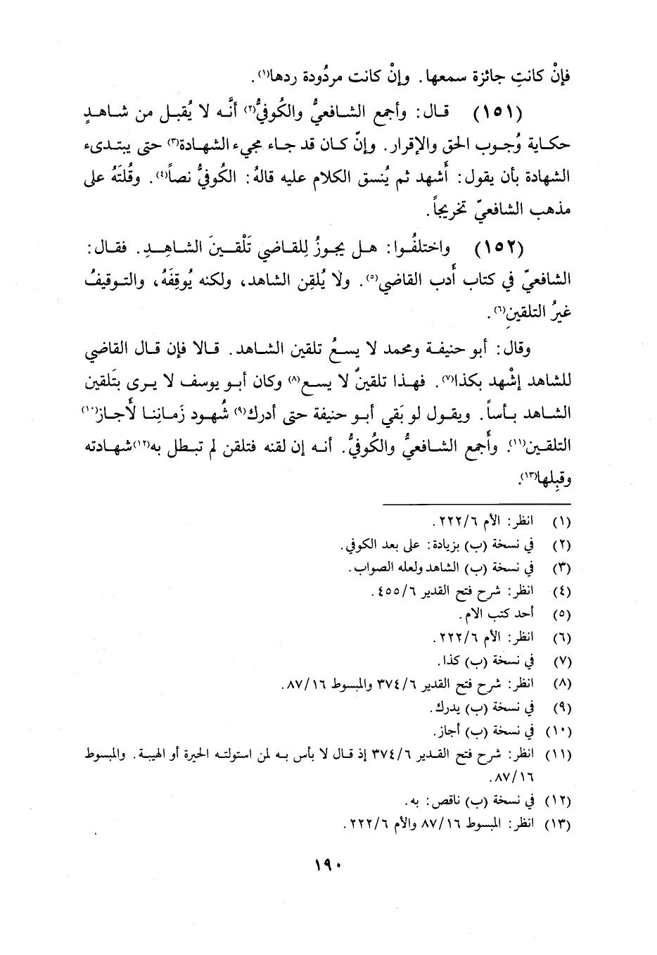 (152) واختلفوا: هل يجوز للقاضي تلقين الشاهد. فقال: الشافعي في كتاب أدب القاضي. ولا يلقن الشاهد, ولكنه يوقفه, والتوقيف غير التلقين.
