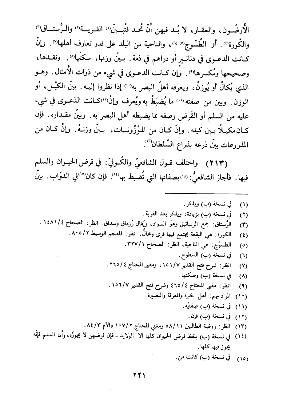 (213) واختلف قول الشافعي والكوفي: في قرض الحيوان والسلم فيها. فأجاز الشافعي: بصفاتها التي تضبط بها. فإن كان في الدواب. بين