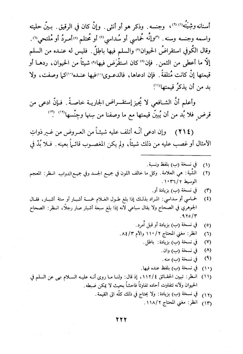 وقال الكوفي استقراض الحيوان والسلم فيها باطل. فليس له عنده من السلم إلا ما أعطى من الثمن. فإن كان استقرض فيها شيئًا من الحيوان, ردها أو قيمتها إن كانت متلفة. فإن ادعاها, فالدعوى فيها عنده كما وصفت, ولابد من أن يذكر قيمتها.