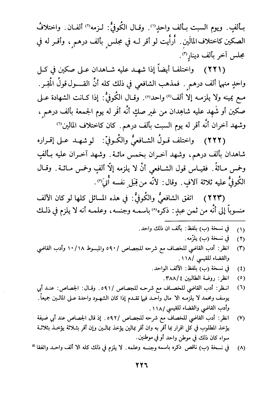 (222) واختلف قول الشافعي والكوفي: لو شهد على إقراره شاهدان بألف درهم, وشهد آخران بخمس مائة. وشهد آخران عليه بألف وخمس مائة. فقياس قول الشافعي أنه لا يلزمه إلا ألف وخمس مائة. وقال الكوفي عليه ثلاث آلاف. وقال لأنه من قبل نفسه أتي.