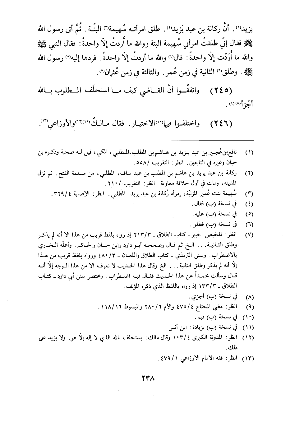 يزيد. أن ركانة بن عبد يزيد. طلق امرأته سهيمة البتة. ثم أتى رسول الله - صلى الله عليه وسلم - فقال: إني طلقت امرأتي سهيمة البتة ووالله ما أردت إلا واحدة, فقال النبي - صلى الله عليه وسلم -: والله ما أردت إلا واحدة. فردها إليه رسول الله - صلى الله عليه وسلم - , وطلق الثانية في زمن عمر. والثالثة في زمن عثمان.