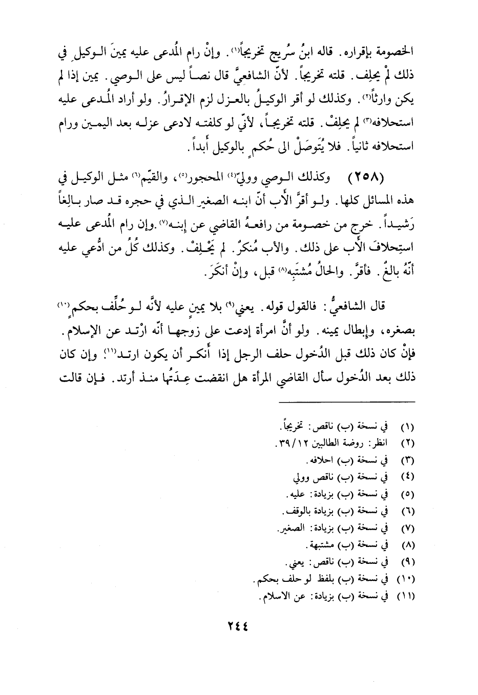 (258) وكذلك الوصي وولي المحجور, والمقيم مثل الوكيل في هذه المسائل كلها. ولو أقر الأب أن ابنه الصغير الذي في حجره قد صار بالغًا رشيدًا. خرج من خصومة من رافعه القاضي عن ابنه وإن رام المدعى عليه استحلاف الأب على ذلك والأب منكر لم يحلف وكذلك كل من ادعي عليه أنه بالغ فأقر والحال مشتبه قبل, وإن أنكر.