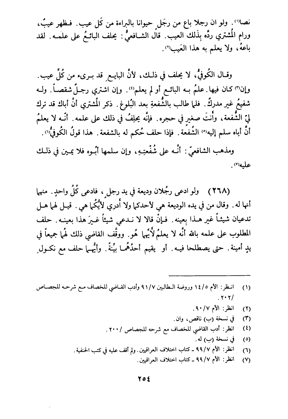 وقال الكوفي: لا يحلف في ذلك, لأن البائع قد برئ من كل عيب. وإن كان فيها. علم به البائع أو لم يعلم. وإن اشترى رجلٌ شقصًا. وله شفيع غير مدرك. فلما طالب بالشفعة بعد البلوغ. ذكر المشتري أن أباك قد ترك لي الشفعة, وأنت صغير في حجره. فإنه يحلف في ذلك على علمه. أنه لا يعلم أن أباه سلم إليه الشفعة. فإذا حلف حكم له بالشفعة. هذا قول الكوفي.