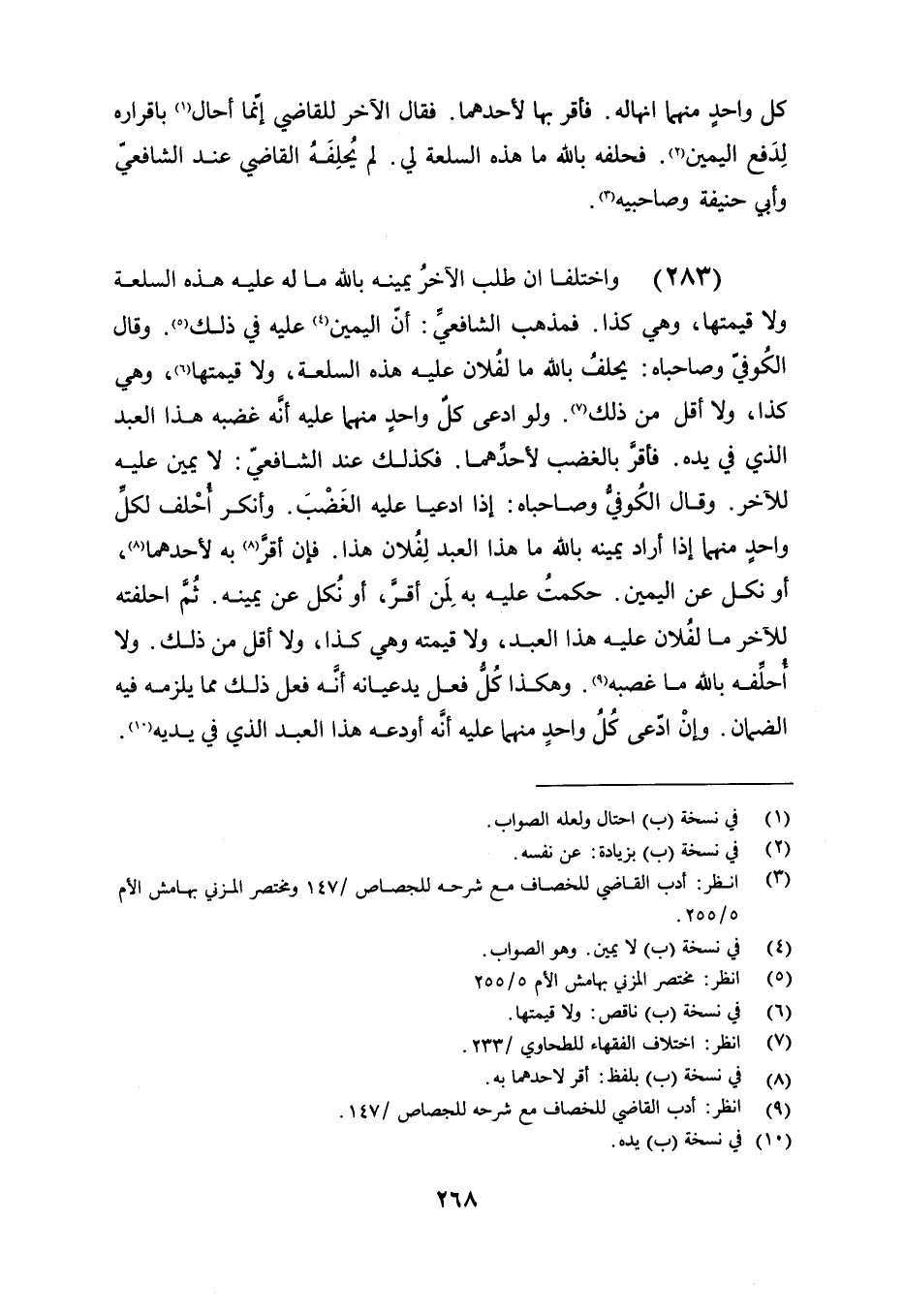(283) واختلفا أن طلب الآخر بيمينه بالله ما له عليه هذه السلعة ولا قيمتها, وهي كذا.