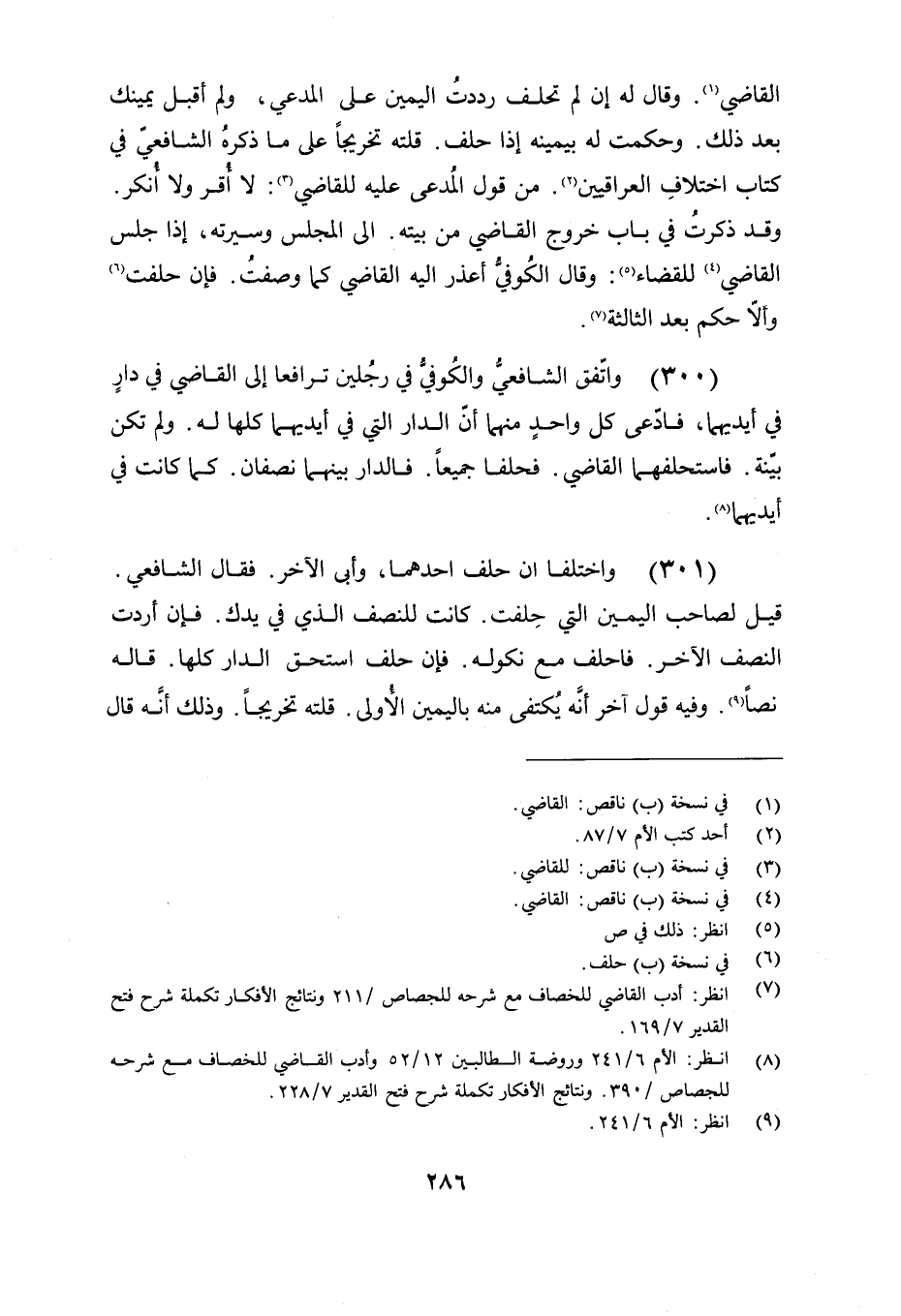 (300) واتفق الشافعي والكوفي في رجلين ترافعا إلى القاضي في دار في أيديهما, فادعى كل واحد منهما أن الدار التي في أيديهما كلها له. ولم تكن بينة. فاستحلفهما القاضي فحلفا جميعا فالدار بينهما نصفان كما كانت في أيديهما.