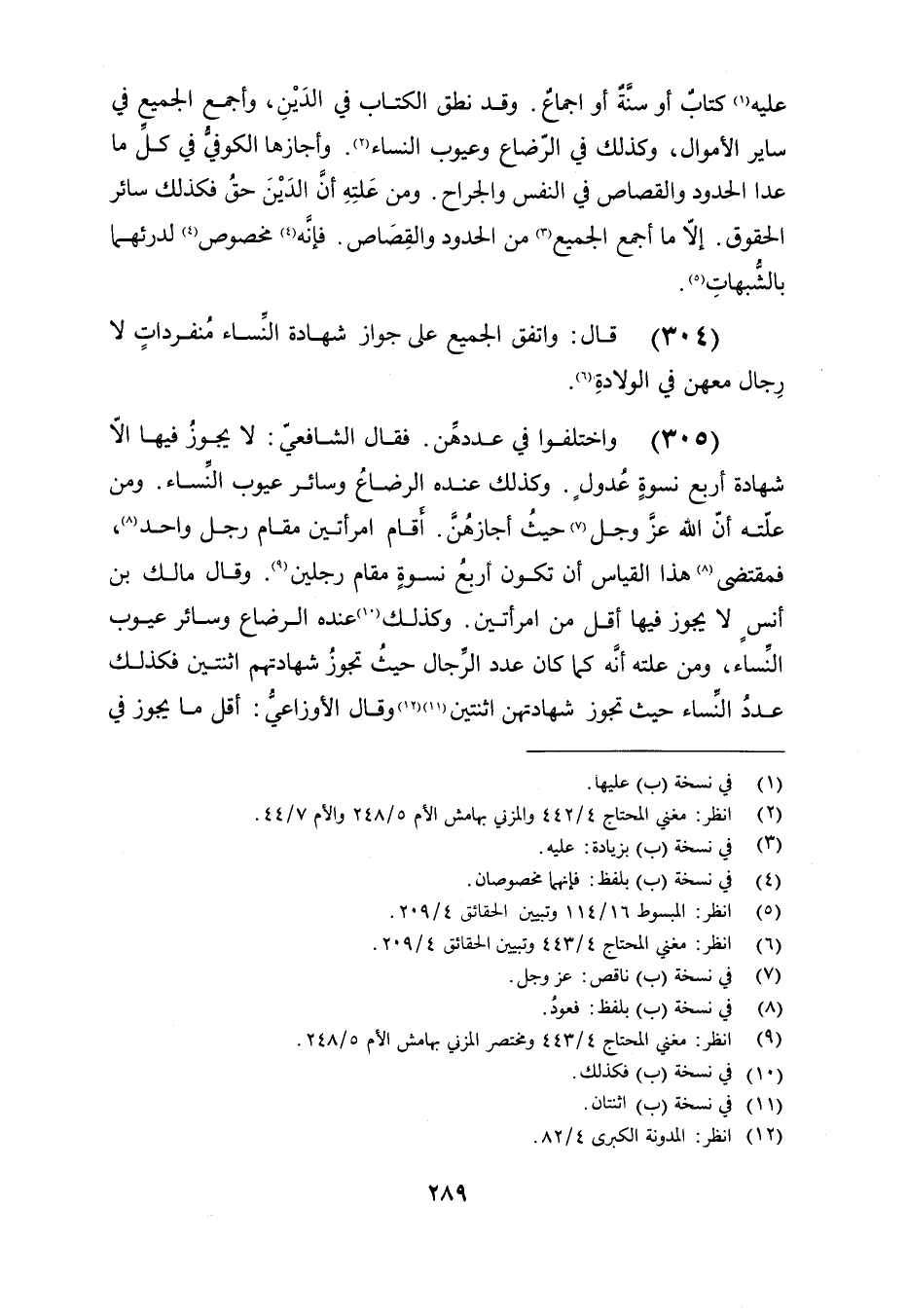 (304) قال: واتفق الجميع على جواز شهادة النساء منفردات لا رجال معهن في الولادة.