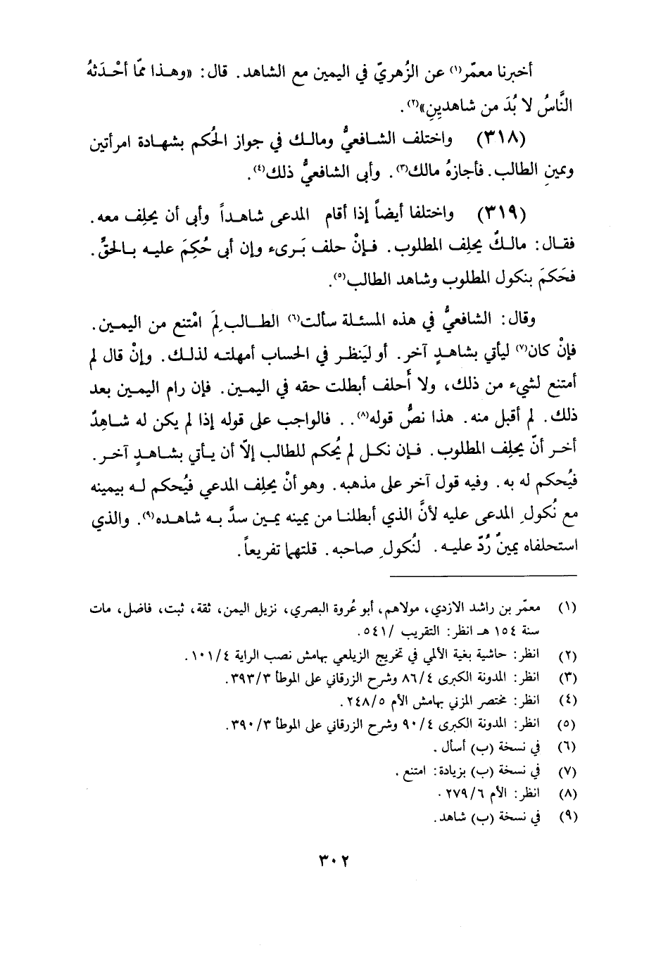(318) واختلف الشافعي ومالك في جواز الحكم بشهادة امرأتين ويمين الطالب. فأجازه مالك. وأبى الشافعي ذلك.
