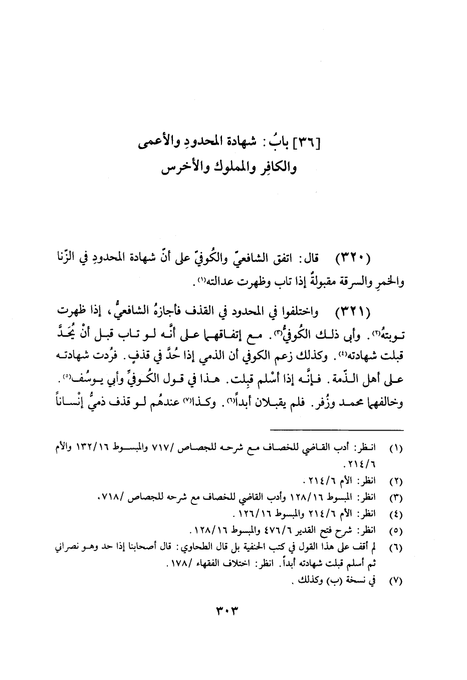(320) قال: اتفق الشافعي والكوفي على أن شهادة المحدود في الزنا والخمر والسرقة مقبولة إذا تاب وظهرت عدالتهز