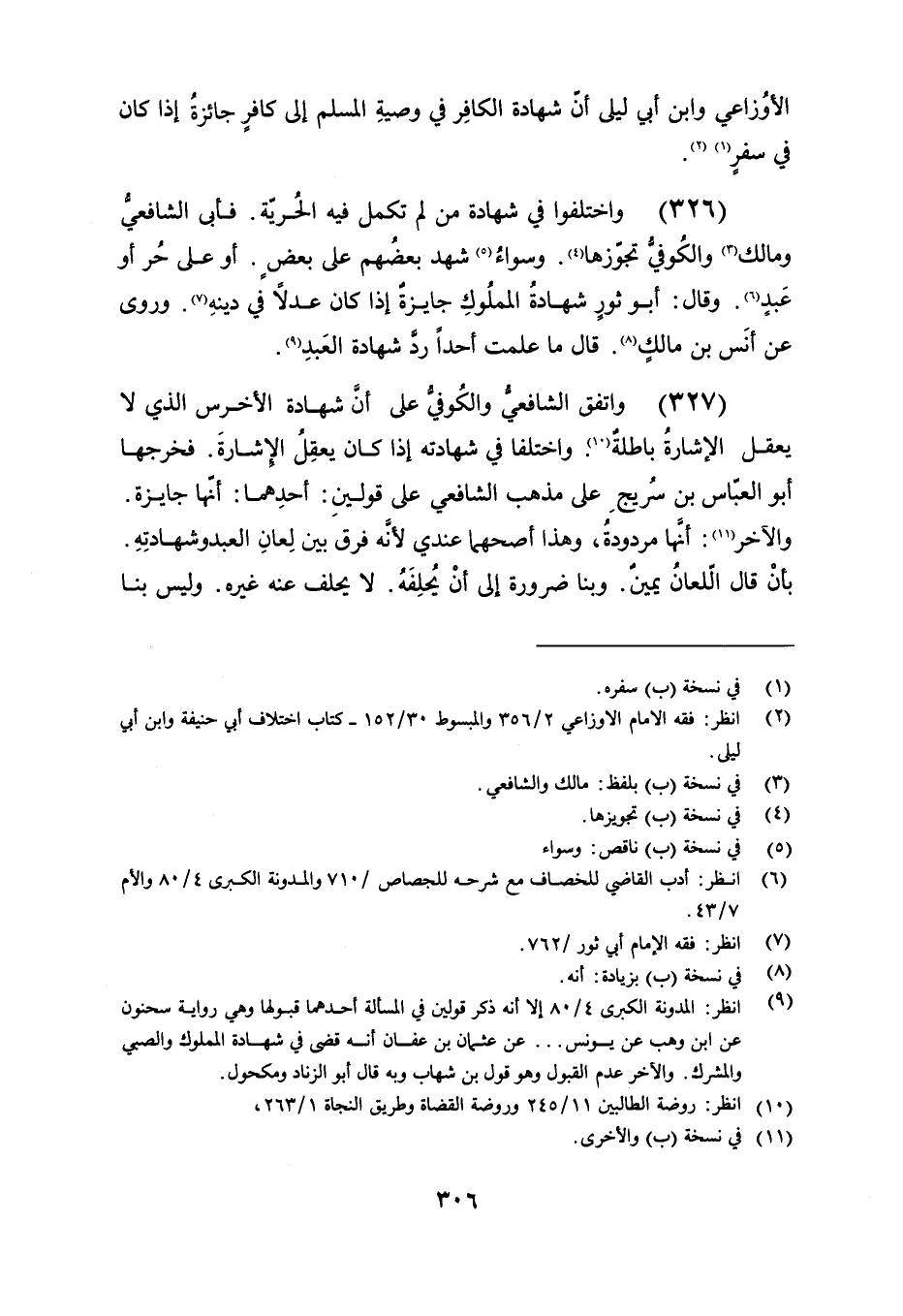 (326) واختلفوا في شهادة من لم تكمل فيه الحرية. فأبى الشافعي ومالك والكوفي تجوزها. وسواء شهد بعضهم على بعض, أو على حر أو عبد. وقال: أبو ثور شهادة المملوك جايزة إذا كان عدلًا في دينه. وروى عن أنس بن مالك. قال ما علمت أحدًا رد شهادة العبد.
