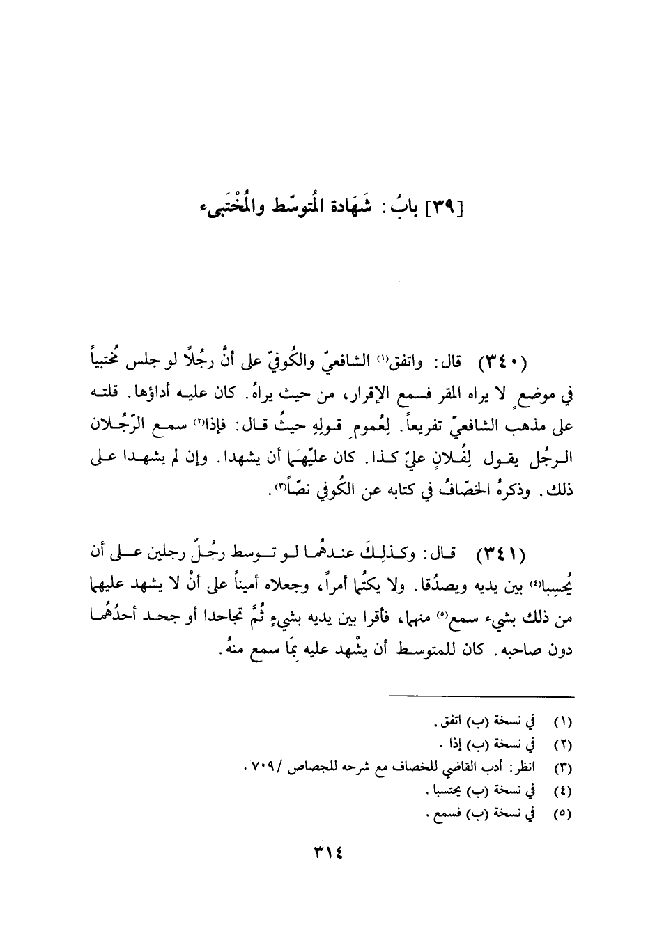 (341) قال: وكذلك عندهما لو توسط رجل رجلين على أن يحسبا بين يديه ويصدقا. ولا يكتما أمرًا, وجعلاه أمينًا على أن لا يشهد عليهما من ذلك بشيء سمع منهما, فأقرا بين يديه بشيء ثم تجاحدا أو جحد أحدهما دون صاحبه. كان للمتوسط أن يشهد عليه بما سمع منه.