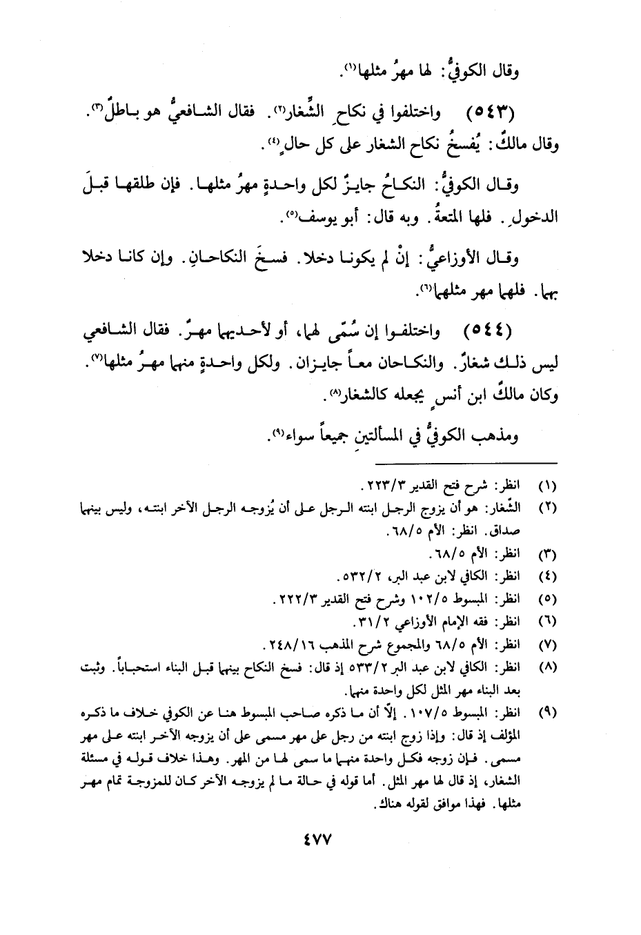 (543) واختلفوا في نكاح الشغار. فقال الشافعي: هو باطل, وقال ملك: يفسخ نكاح الشغار على كل حال.