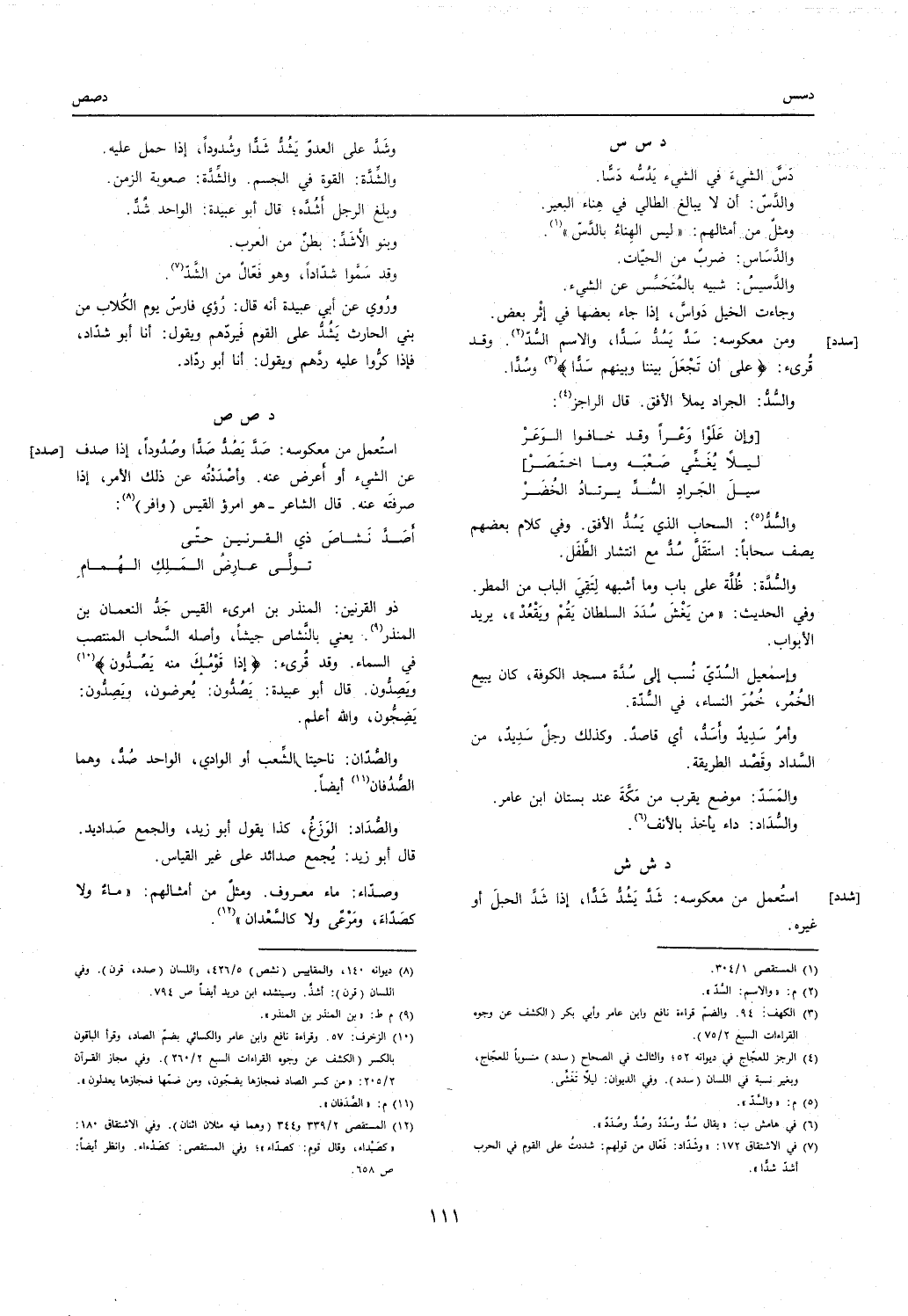 [سدد] وَمن معكوسه: سد يسد سدا وَالِاسْم السد. وَقد قرئَ: {على أَن تجْعَل بَيْننَا وَبينهمْ سدا} وسدا.