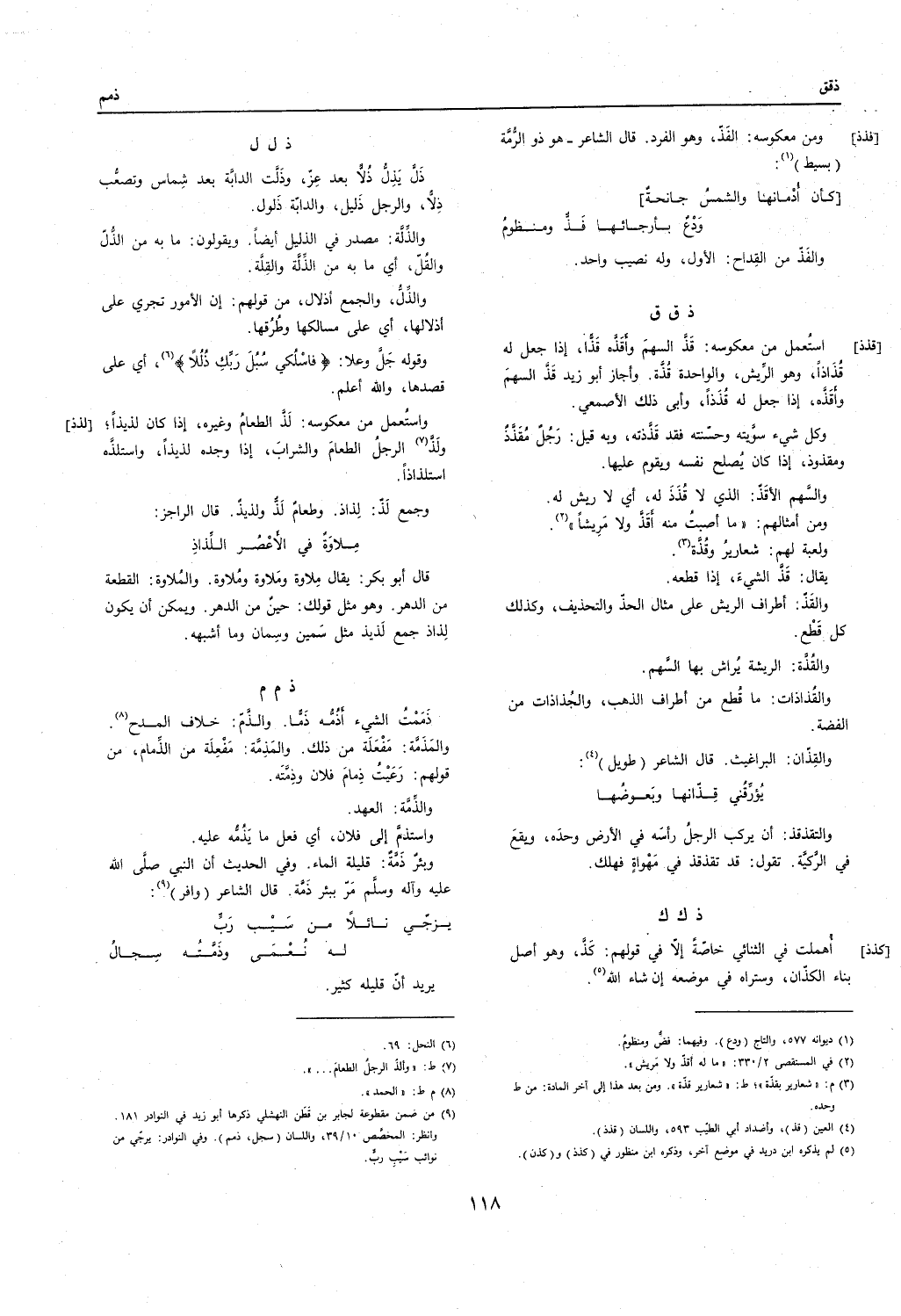 [قذذ] اسْتعْمل من معكوسه: قذ السهْم وأقذه قذا إِذا جعل لَهُ قذاذا وَهُوَ الريش والواحدة قُذَّة. وَأَجَازَ أَبُو زيد قذ السهْم وأقذه إِذا جعل لَهُ قذذا وَأبي ذَلِك الْأَصْمَعِي.